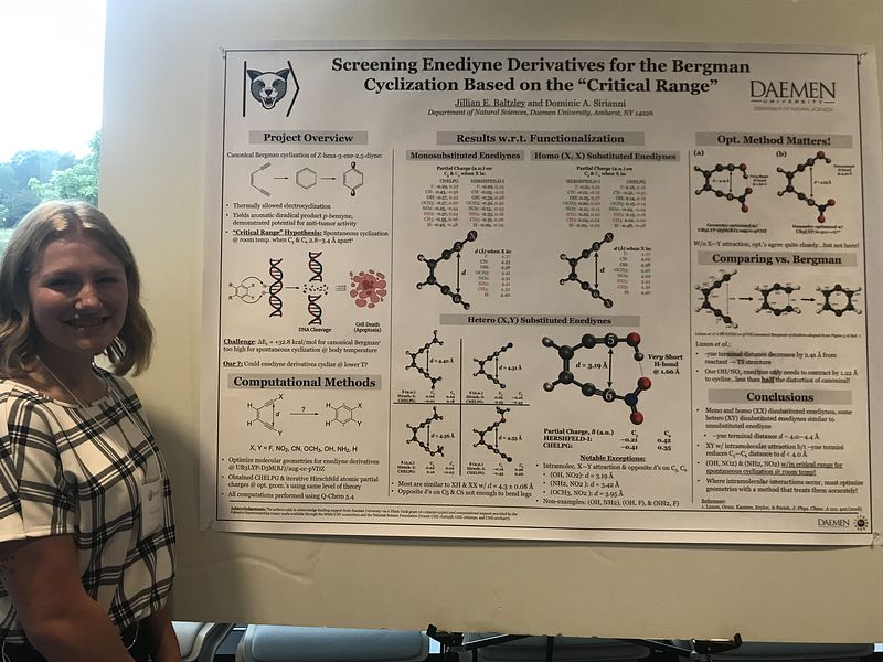 • "Screening Modified Reactants of the Bergman Cyclization for Potential Anti-Tumor Activity" Student-Faculty Interdisciplinary Research Think Tank, Daemen University (Spring 2023)